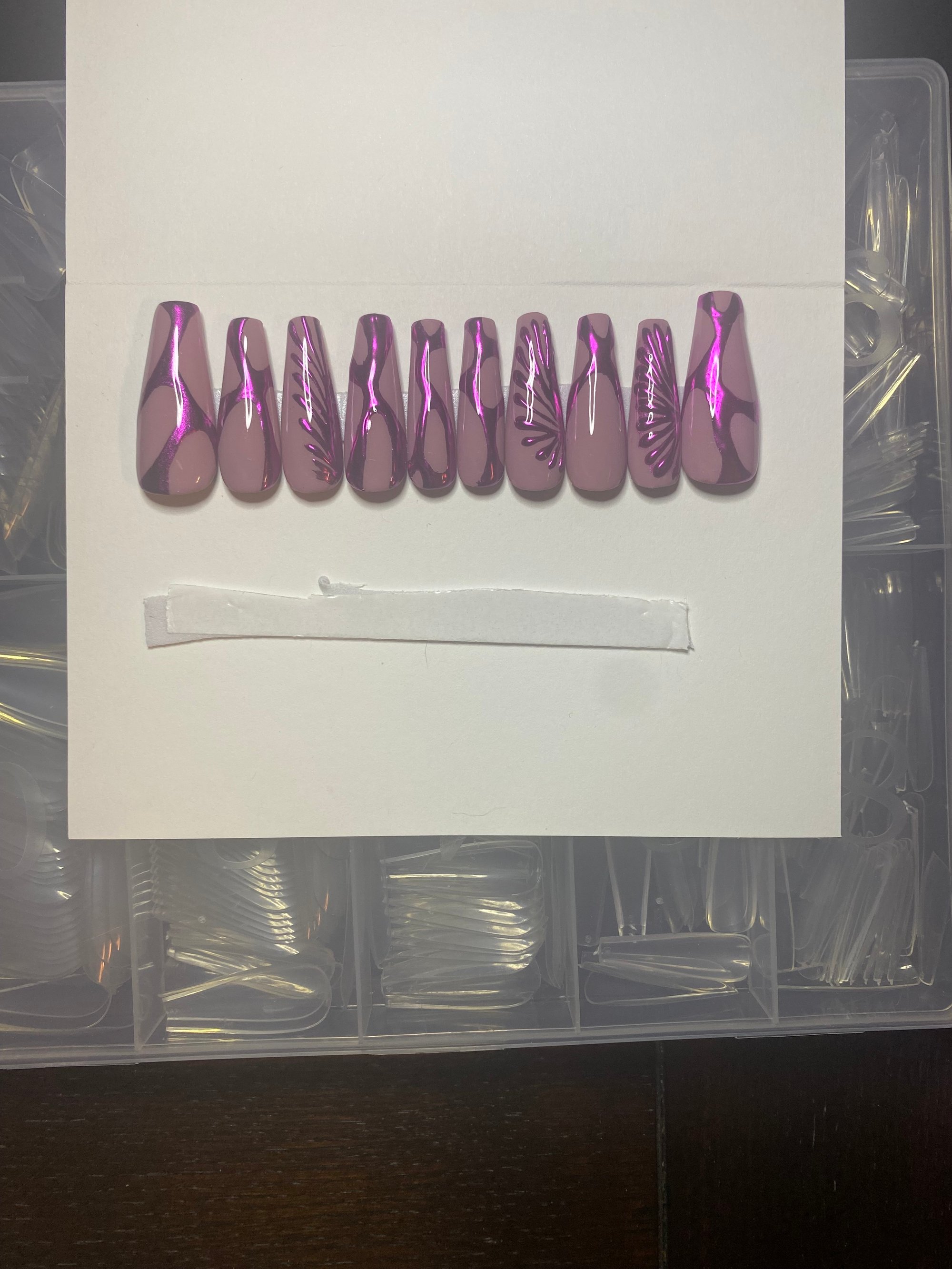One of a kind, hand made press on nails, made in the USA. Made with cruelty free nail gels. Pink Osmosis is an absolute stunner. The encapsulated pink chrome will have you staring at your nails for hours. 'Osmosis Jones' has nothing on Pink Osmosis nails.